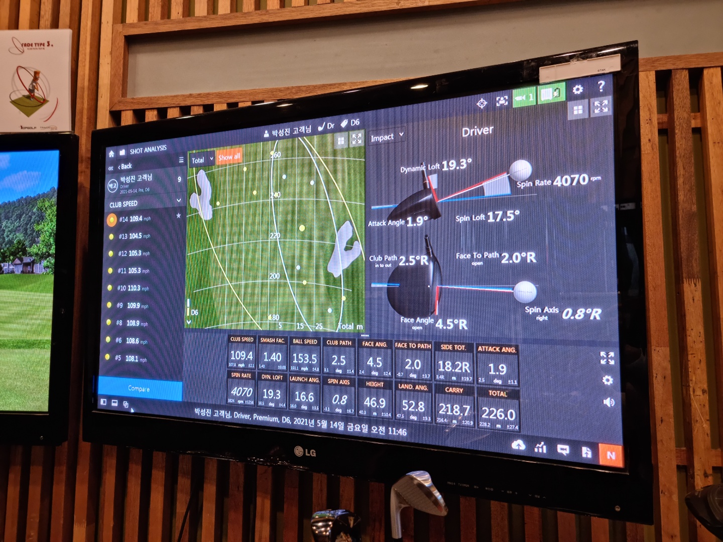 벤투스로 측정해본 트랙맨 수치는 다음과 같습니다.